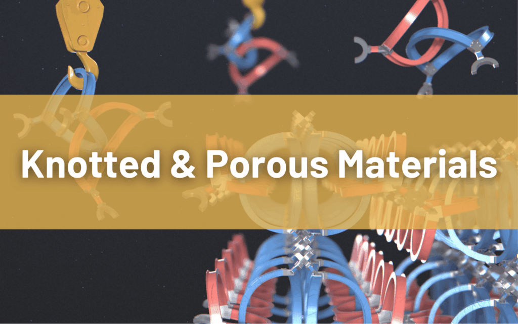 Developing knotted and porous materials, including crystals and aerogels